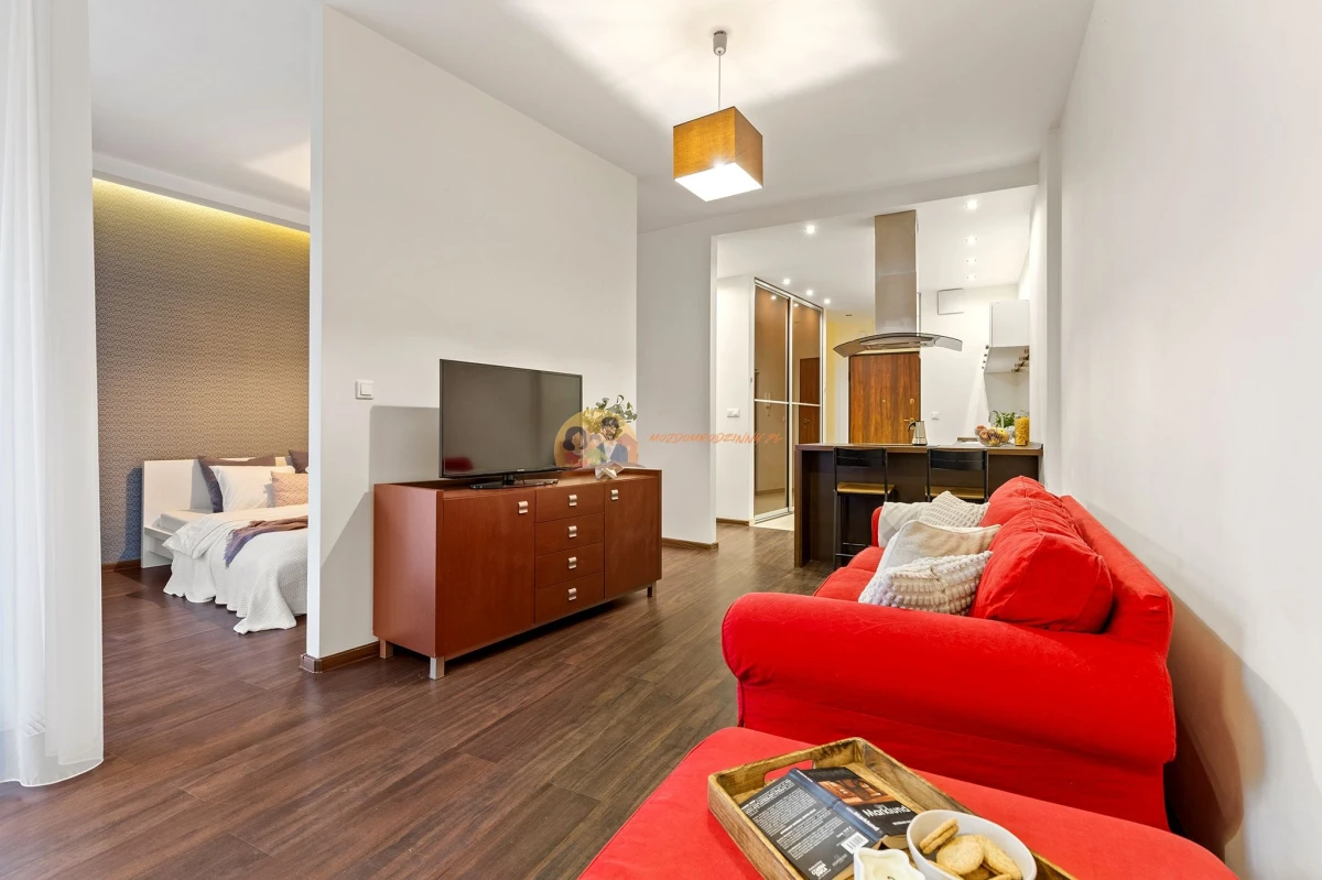 - 2 pokoje - salon (20,5 mkw) oraz sypialnia (12,2 mkw)
