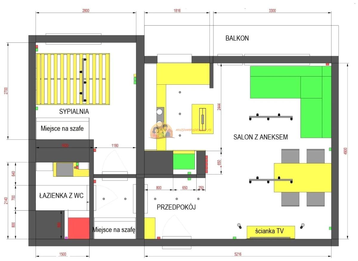 - Duży BALKON który jest na całą szerokość salonu i kuchni.
