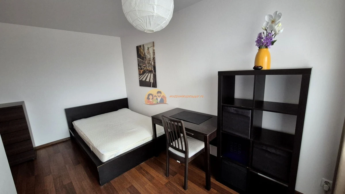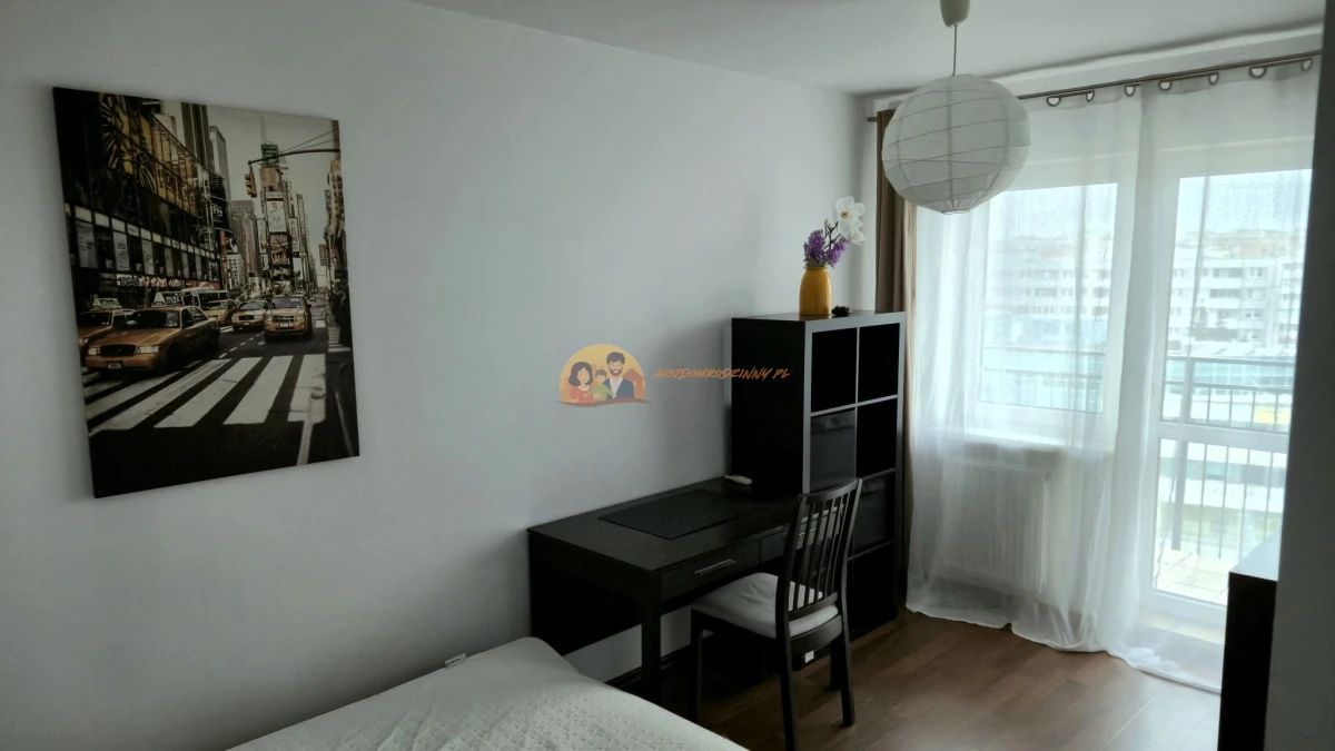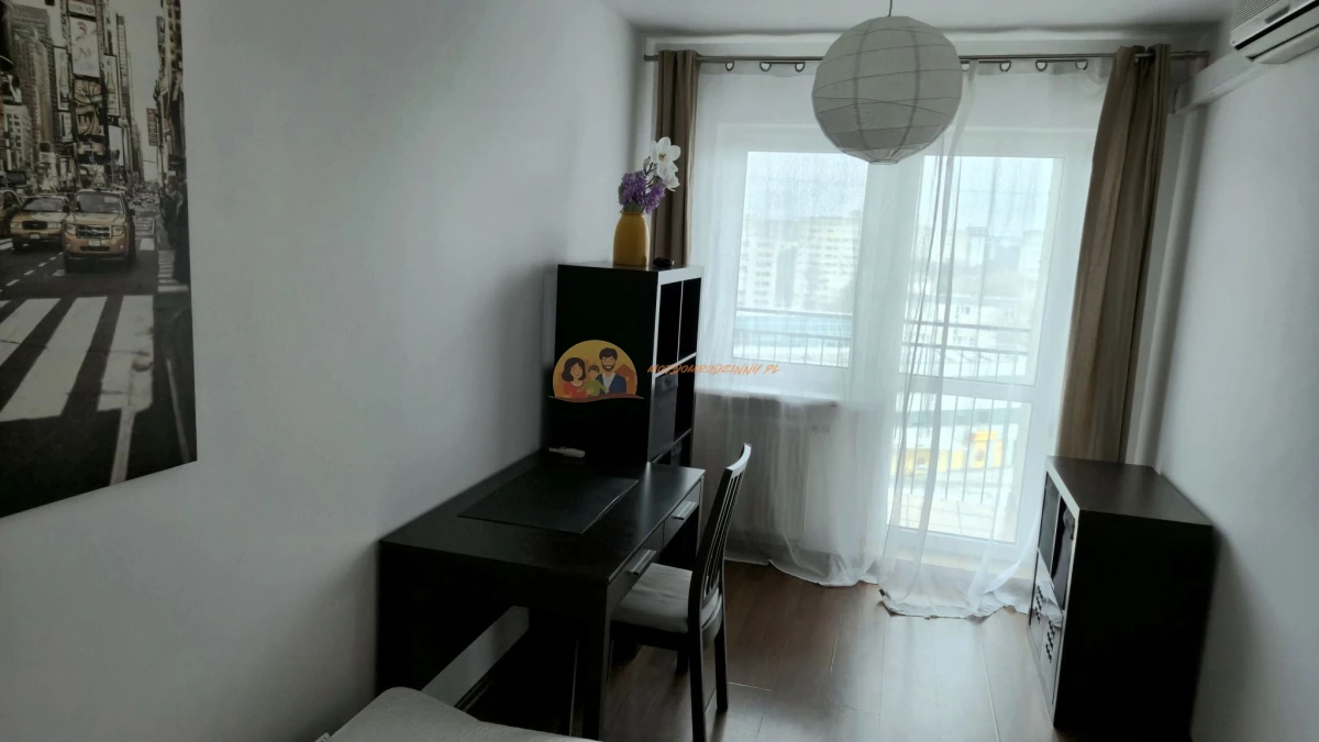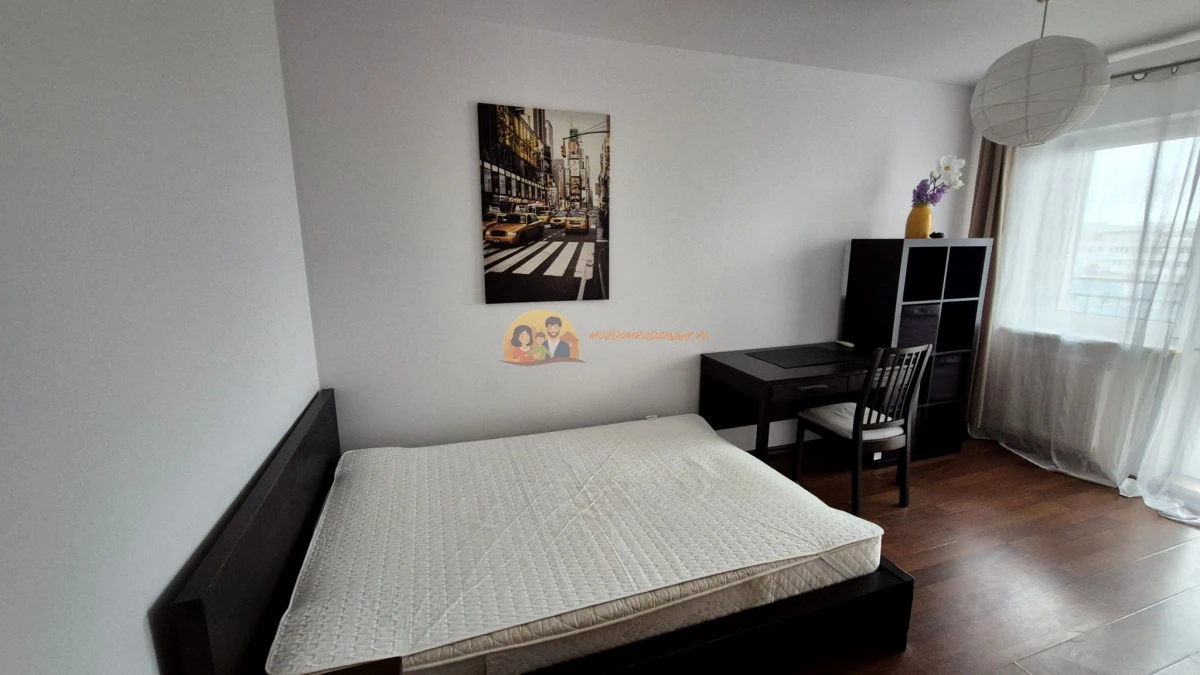 SYPIALNIA: Łóżko 140x200 cm, biurko do pracy zdalnej, krzesło biurowe, szafka nocna, klimatyzacja.
